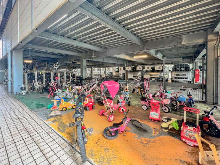 このような施設は、実は一般的な分譲・賃貸マンションでは少なく、通常は「契約している駐輪スペースを子供用と共用する」「玄関内に持ち込んで保管する」などの工夫が必要なケースが大半です。